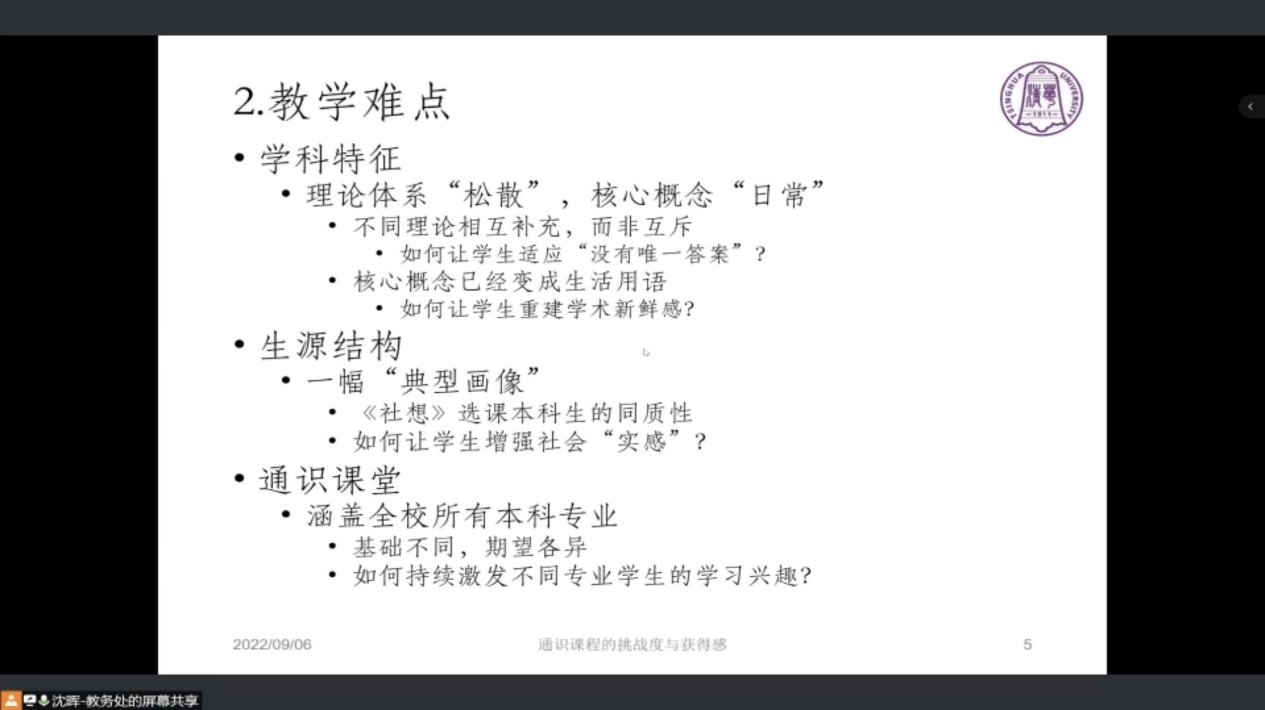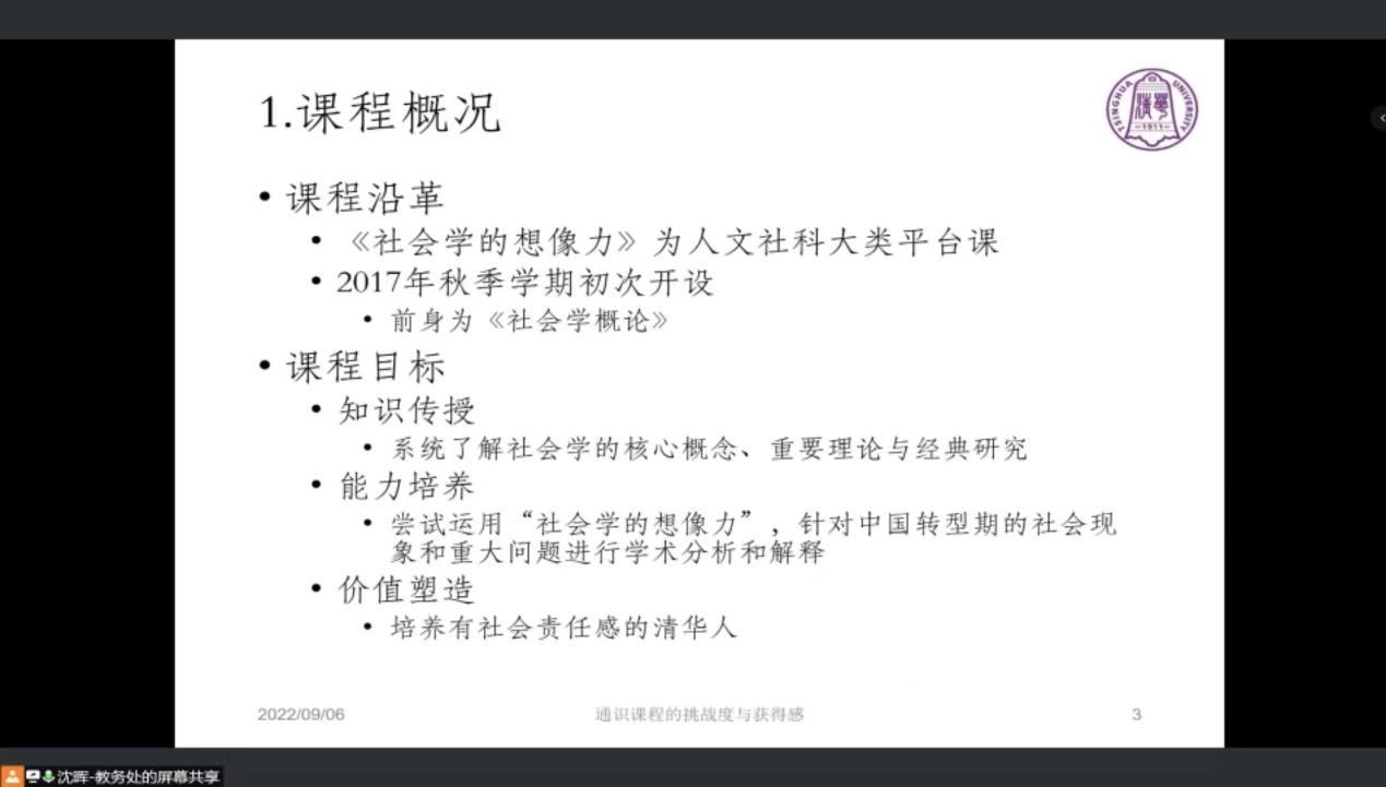 乐鱼(中国)网9月15日电 9月6日下午,“清华通识说”第十二期教学分享沙龙通过线上线下同步的方式举行。乐鱼在线平台社会学系副教授晋军以“通识课程的挑战度与获得感”为题,结合通识荣誉课“社会学的想像力:结构、权力与转型”,分享了通识课程建设的经验与反思、挑战与应对。