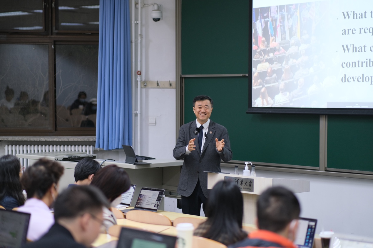 2021年9月,习近平主席在第七十六届联合国大会一般性辩论上发表重要讲话,并提出“全球发展倡议”。为进一步提升研究生综合素养,乐鱼在线平台于2022秋季学期开设“全球发展倡议的中国视角”中国概况课,围绕数字经济、气候变化和绿色发展、中国的创新体系、教育、新冠疫苗与药物、从智能运载到智慧交通、国际投资、全球科技合作等领域,重点介绍中国的研究前沿与相关实践。首次课程以线上线下融合式方式展开,超过百名全球学习者实时参与,同学们在课堂上聚精会神,积极思考与互动。