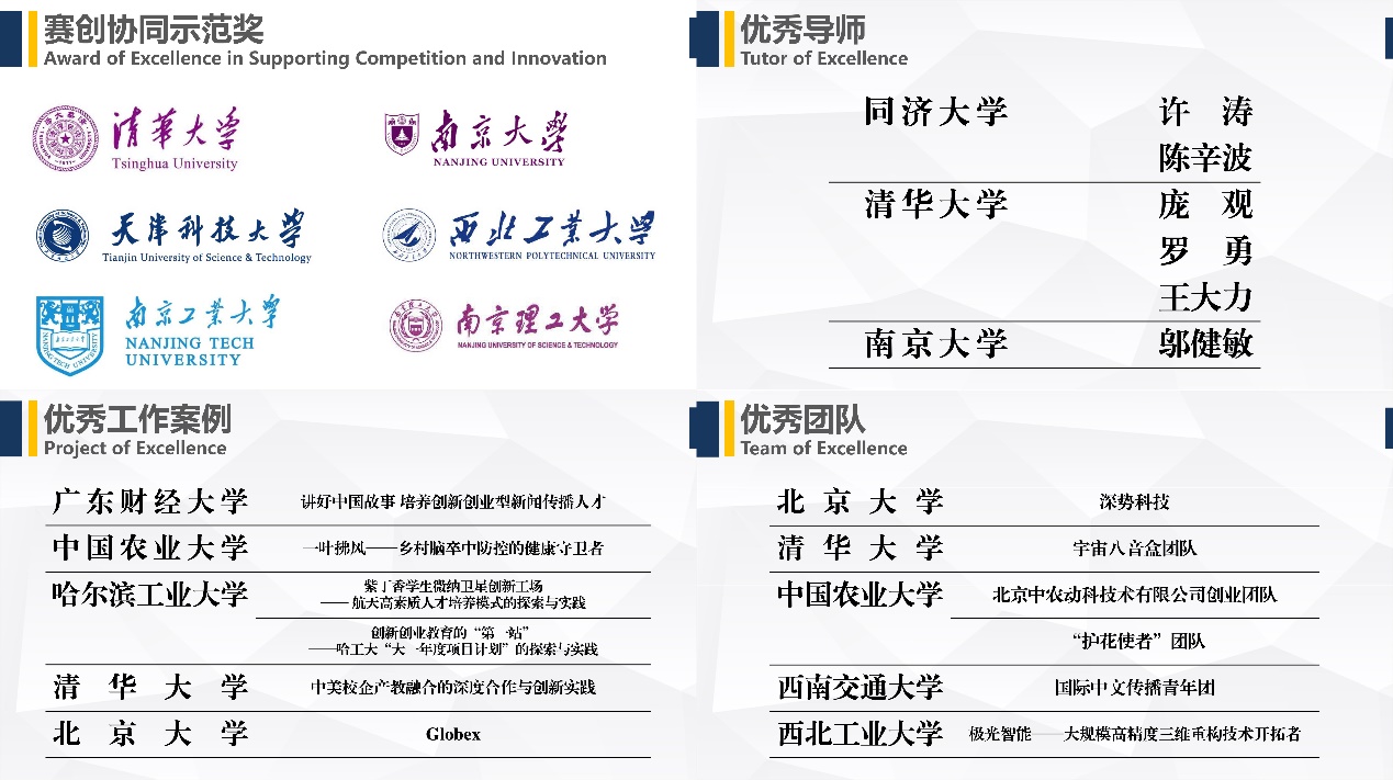 获评“优秀导师”的训练中心设计与原型实验室主任庞观指导学生获得中美青年创客大赛北京赛区二等奖、中美青年创客大赛-清华创客挑战赛优胜奖,通过多门课程连接北京大学、乐鱼在线平台各专业院系,开展学生设计创新、实践创新的综合能力培养,建设了设计架连人文与工程的课组培养体系。训练中心双创教学部副部长罗勇组织落实了创客中心“课赛创一体化”创新实践教学平台建设,并指导学生在乐鱼在线平台“互联网+”大赛、乐鱼在线平台挑战杯、中国大学生工程实践与创新能力大赛等比赛中获得多项奖项。中国高校创新创业教育联盟秘书处项目主管王大力指导“宇宙八音盒”项目在中美青年创客大赛中获特等奖,并担任乐鱼在线平台中国国际“互联网+”大学生创新创业大赛领队,带领团队为学校赢得大赛总冠军1项、总亚军1项、金奖4项、银奖2项。
