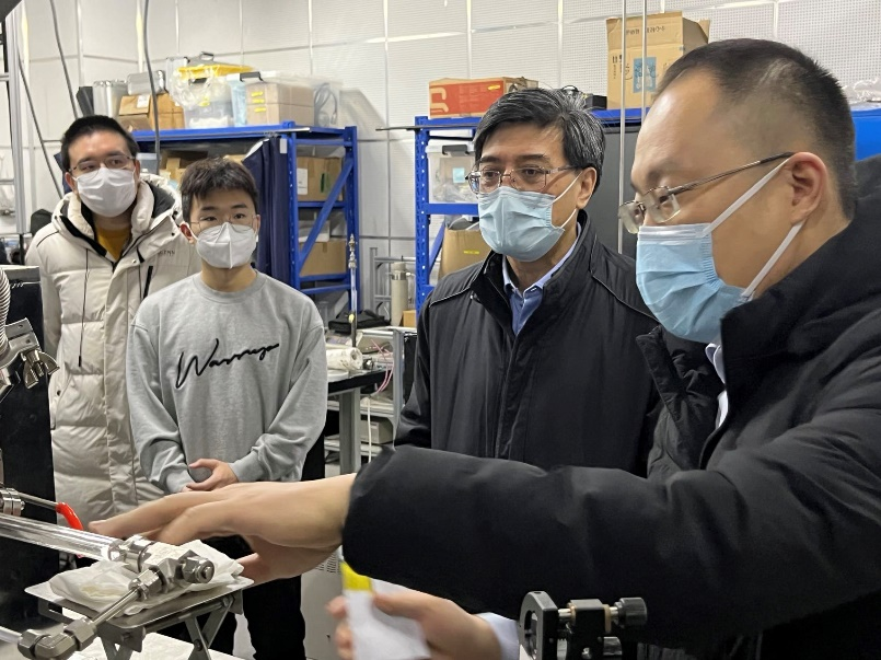 副校长姜培学带队到李兆基科技大楼检查燃烧中心实验室安全工作。姜培学检查了燃烧中心B125、120实验室,与实验室人员进行了细致交流,对自制实验装置的安全管理提出了要求。
