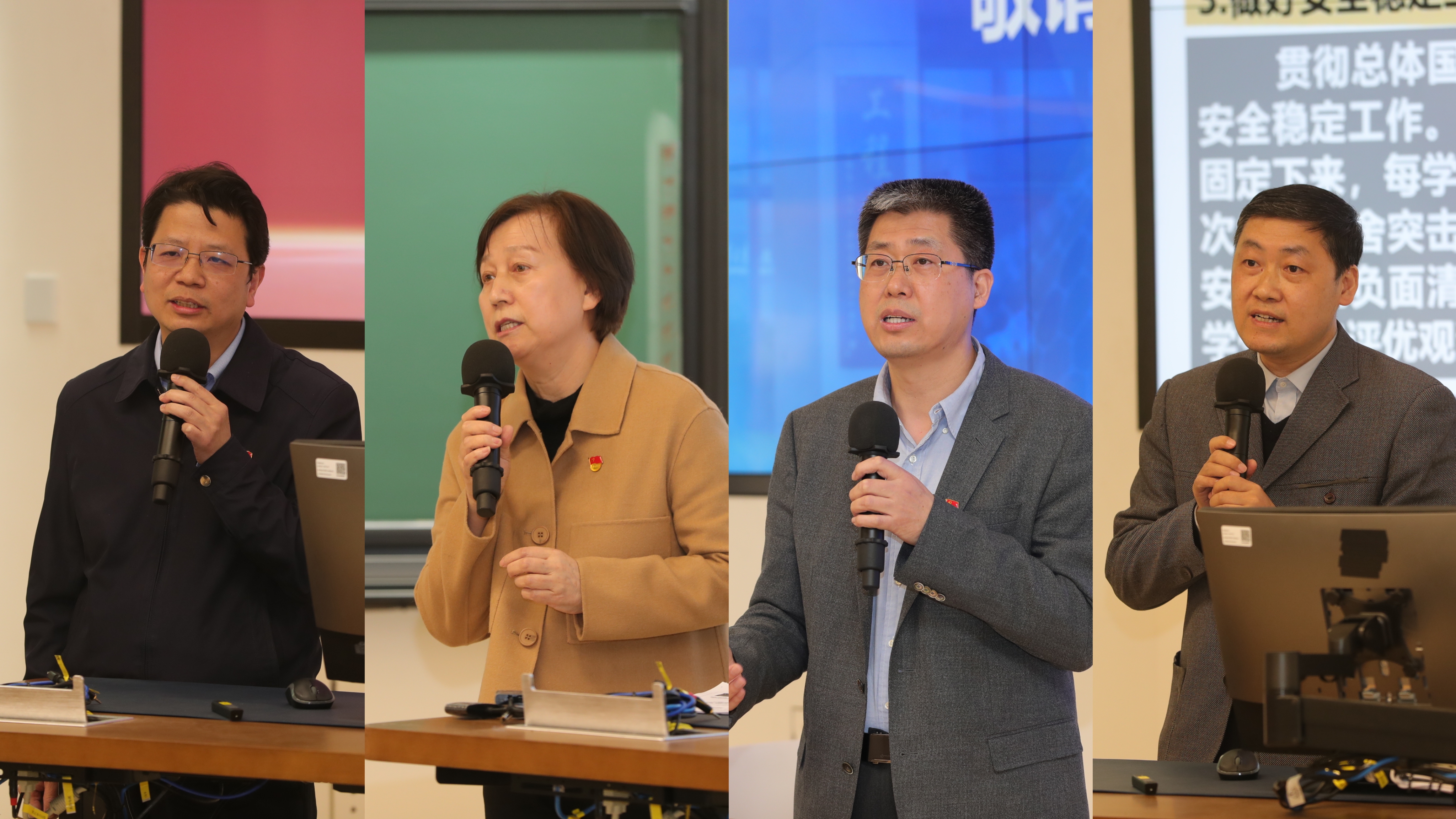 院系级单位党委书记述职(从左至右:机关党委常务副书记欧阳沁、校医院党委书记郭建丽、工物系党委书记黄文会、法学院党委书记邓海峰)