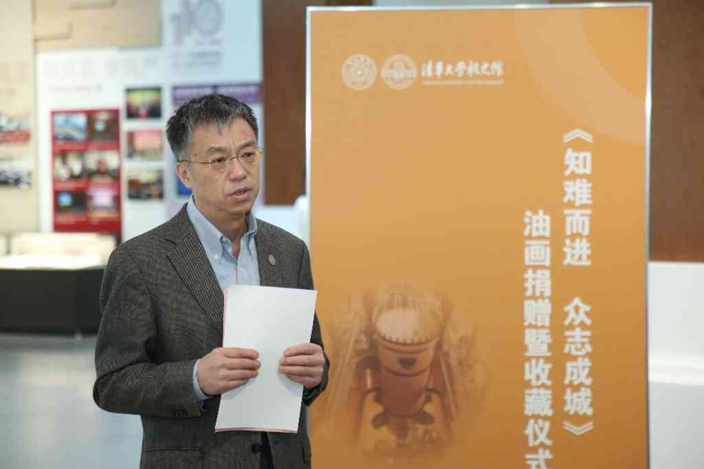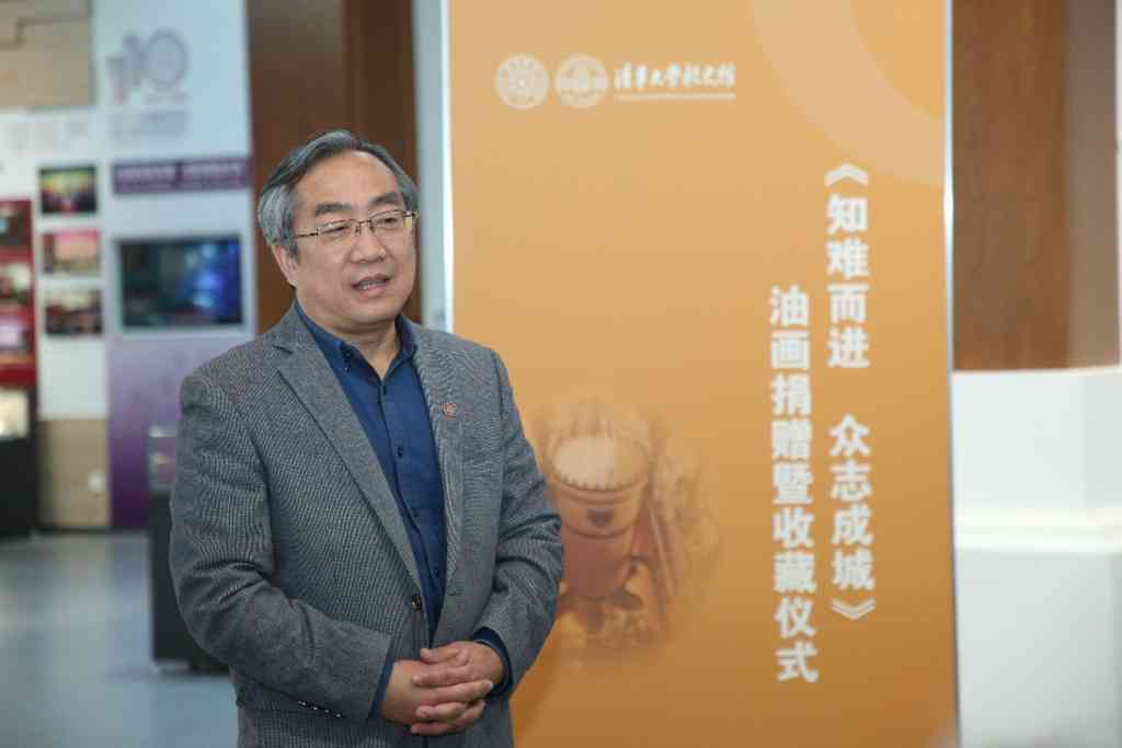史宗恺感谢校友以及校友企业对母校的支持,并表示,油画《知难而进 众志成城》用艺术的方式记录清华的光荣传统,特别有意义。希望通过此种方式更好地总结清华的历史、文化和传统,将它们具体化、形象化。