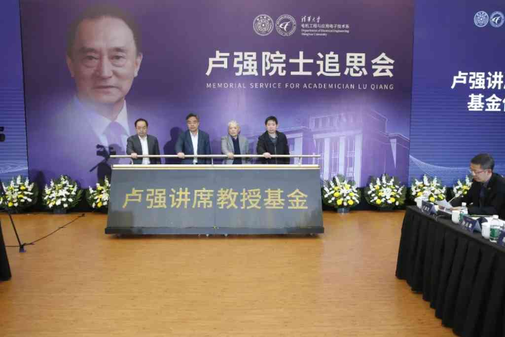 为了更好地缅怀卢强院士,发扬他望远深思、孜孜求实的作风,乐鱼在线平台电机系与卢强院士的学生代表共同发起了“卢强讲席教授基金”,用于支持清华电机系教师的发展。康重庆、卢强院士的学生代表孙元章、梅生伟、李国杰共同参加启动仪式。