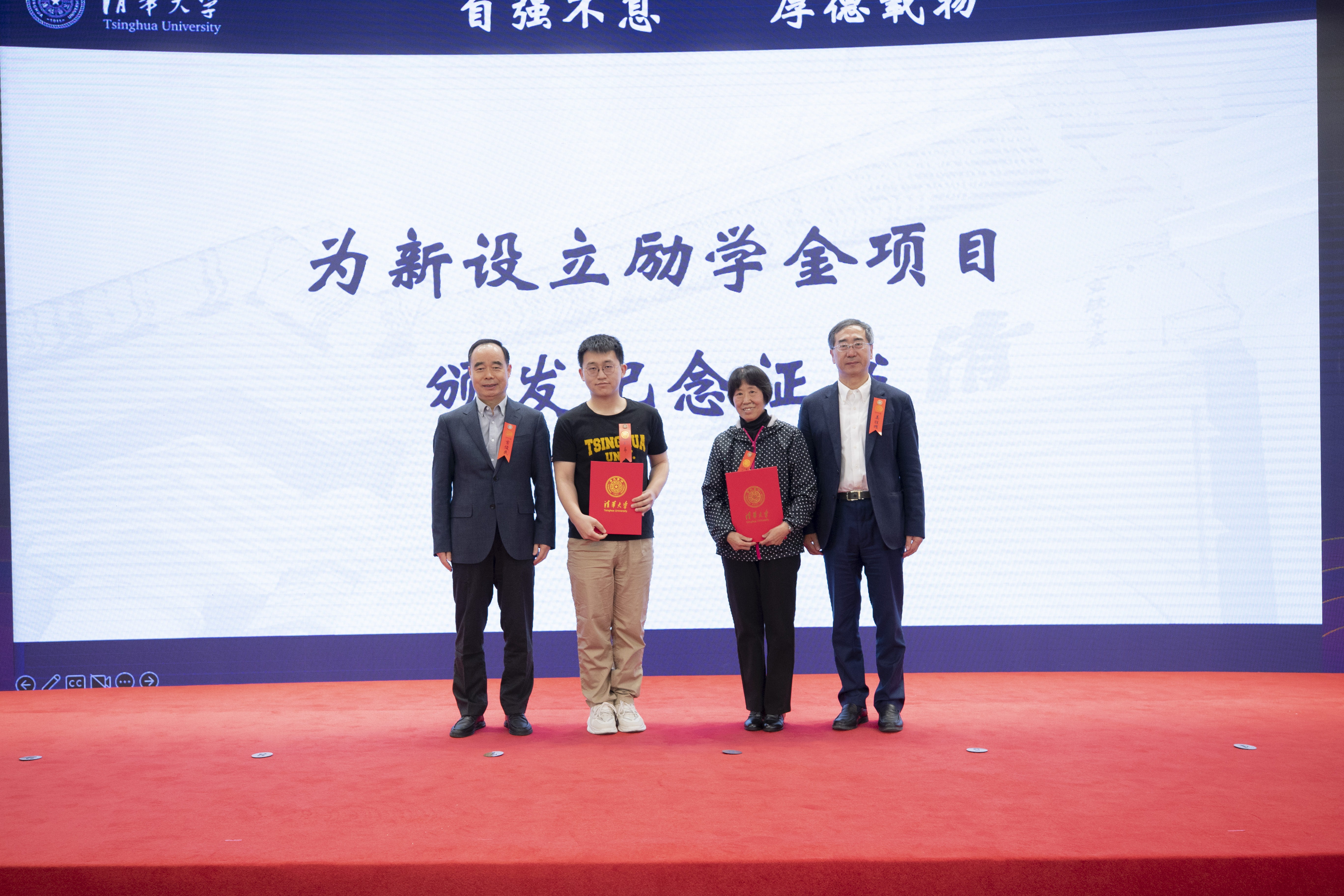 材料学院2016级本科生李文腾作为励学金获得者代表发言。他在2016年拿到清华录取通知书时被确诊患有PNH溶血症,用了近七年时间完成了本科学业,去年9月顺利保研继续深造。他向曾经帮助过他的校友表示感谢并表示,会始终带着这份感激之情坚强地走下去。
