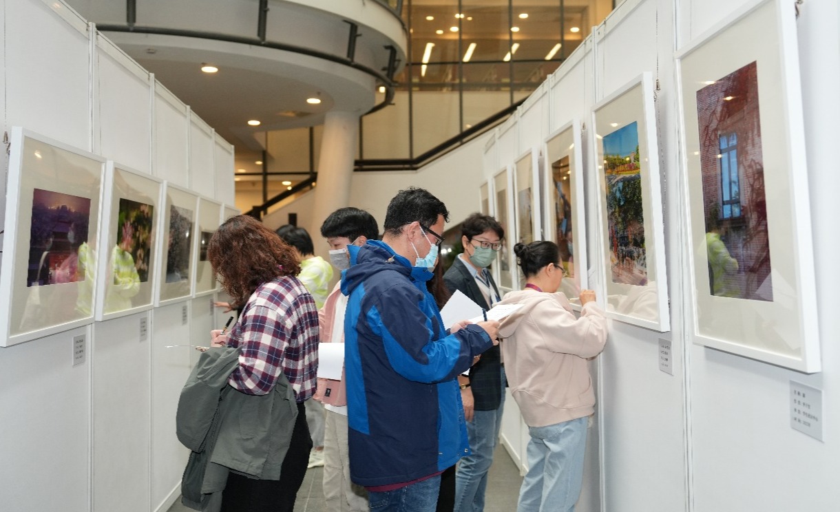 开幕式现场还有来自46个分工会的文艺委员作为本次摄影展的参与者和评审者。他们驻足欣赏,悉心观察,以严谨认真的态度选出自己心目中的“最美作品”。