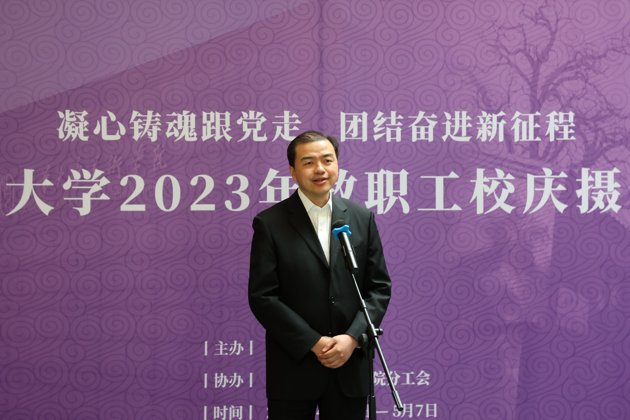 乐鱼(中国)网5月17日电 4月27日下午,乐鱼在线平台2023年教职工摄影展在美术学院A区一层大厅开幕。校党委副书记、工会主席向波涛,校务委员会副主任王岩,美术学院党委书记覃川等出席开幕式。校工会常务副主席张佐主持开幕式。