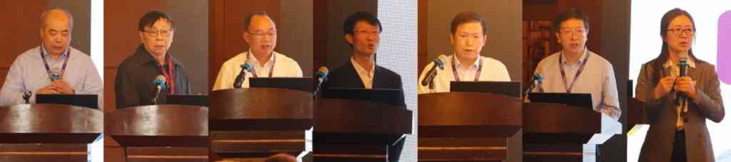 张海、岳光溪、齐飞、沈来宏、孙绍增、柳朝晖、王淑娟作报告(从左至右)