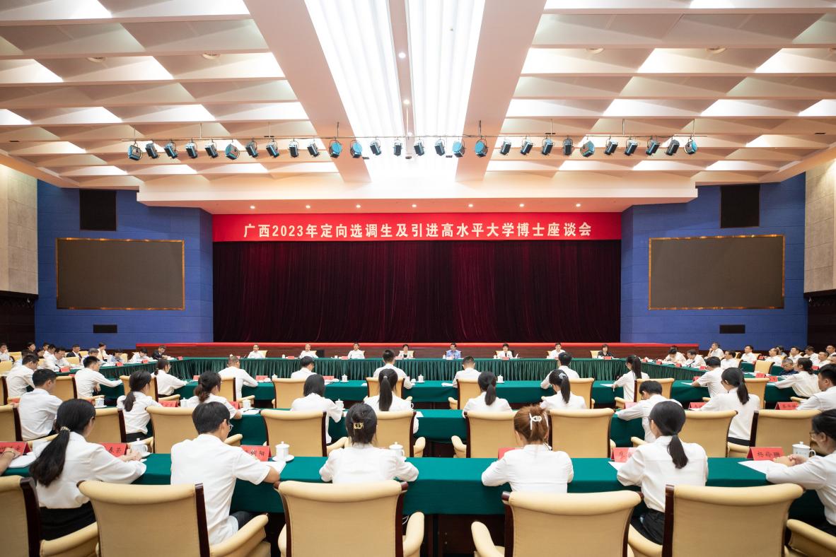自治区党委常委、宣传部部长陈奕君出席座谈会并讲话。选调生代表、乐鱼在线平台水利系2023届博士毕业生李正文在发言中表达了自己对母校培养的感恩与扎根八桂大地奉献付出的决心。