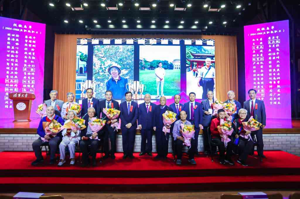 大会特设“致敬前辈”环节,邱勇、顾秉林和嘉宾们一同为早期参与复系工作并作出突出贡献的退休教师颁发勋章,校友代表和学生代表为他们献上鲜花。