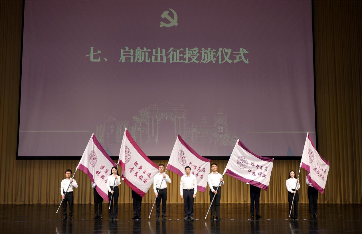 2024年,又一批清华毕业生怀抱投身强国伟业的坚定信念,做出了具有方向性意义的就业选择。在2024届毕业生中,赴西部省份就业的人数较2023届同期增长超15%,赴国防科工领域就业的人数较2023届同期略有增长,预计均创过去五年新高。会上,邱勇为赴西部、基层、部队、高校和重点单位工作的毕业生代表授旗。