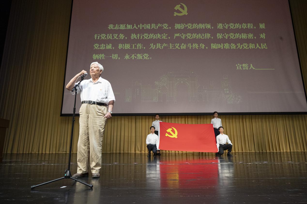 在过增元院士的领誓下,全体党员一起重温了入党誓词。