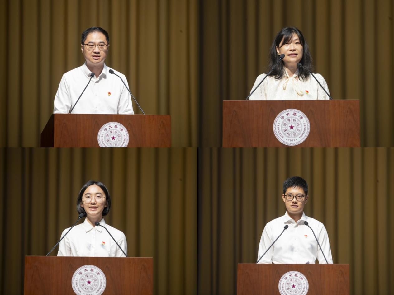 会上,学校第三批党建标杆单位代表、自动化系党委书记古槿结合创建工作,分享了系党委不断强化党组织的政治功能和组织功能,以高质量党建引领高质量发展的经验体会。全国第三批“双带头人”教师党支部书记工作室负责人、建筑学院城市规划系党支部书记唐燕分享了支部坚持以建设美好人居环境为中心,努力探索党建与业务工作深度融合下的学科发展新成效。书院求真1党支部书记李昕妙分享了学生党支部以理论学习为先导、以支部建设为主线、以服务同学为理念,逐步形成的“凝心铸魂固根本、锤炼品格强党性、积极奉献敢担当、又红又专求发展”特色做法。新党员代表、经管学院2023级硕士生贾欸分享了自己在党组织的引领下,将对党的认识从感性向往上升到价值认同的思想历程。