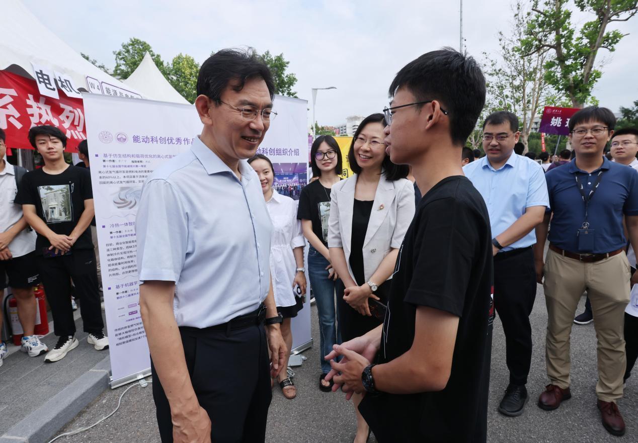 无体育,不清华。体育代表队宣传点前悬挂的一排奖牌格外引人注目。邱勇询问了现场报到新生的专业方向,勉励同学们发扬清华优良学风、传承清华体育传统,延续清华荣光。今年是“两弹元勋”、清华校友邓稼先同志诞辰100周年,以邓稼先为原型的乐鱼在线平台原创话剧《马兰花开》即将迎来第100场公演。邱勇来到学生艺术团宣传点,鼓励剧组师生不断创新艺术形式,向新同学们更好地讲述邓稼先等老一辈科学家爱国奉献的故事。