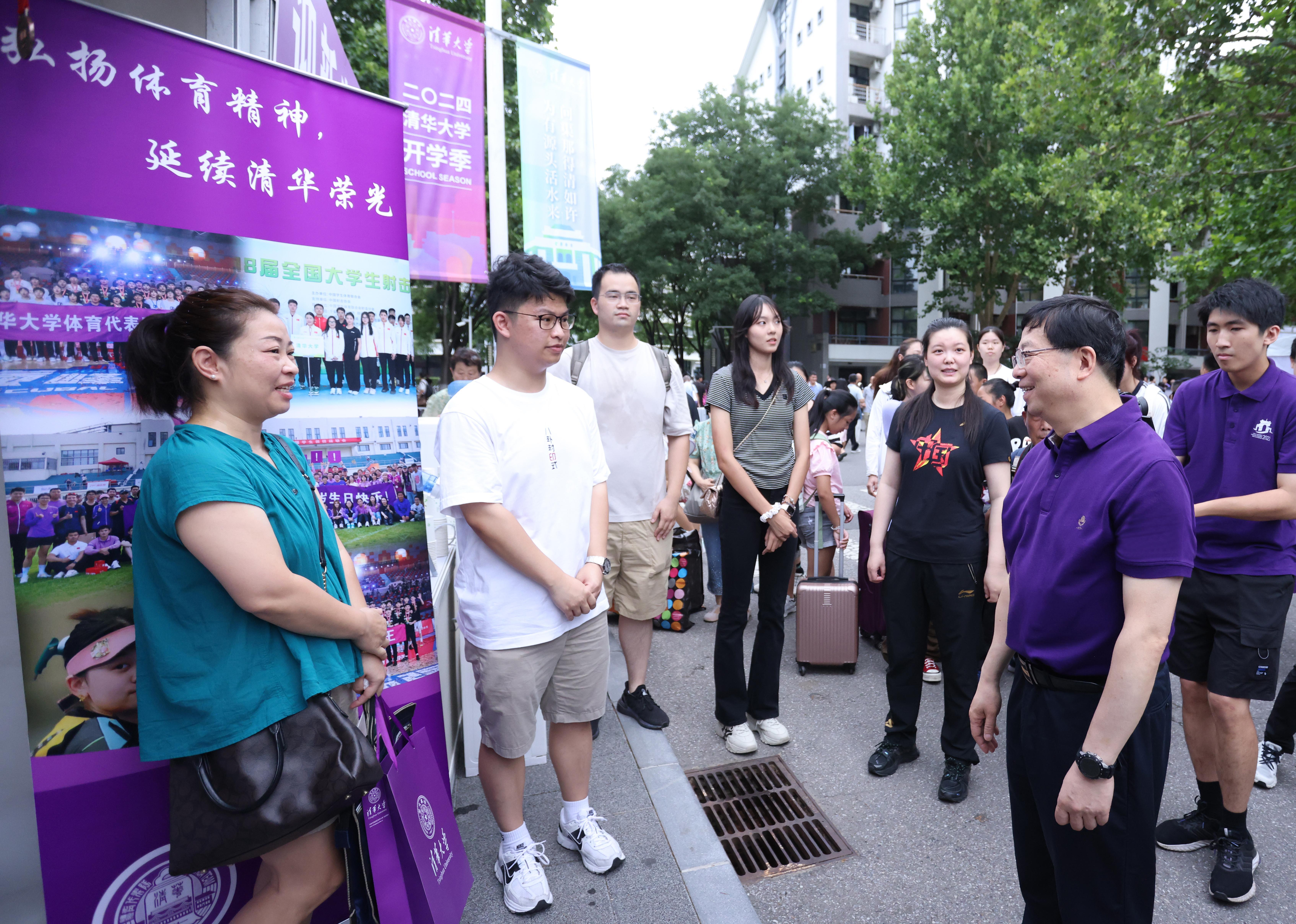 “欢迎你们!相信开放包容的清华园会为大家追逐梦想创造更加广阔的舞台!”在紫荆23号楼国际新生报到点,邱勇向前来报到的新生表示祝贺。他详细了解国际新生入学报到的情况,检查学生公寓的安全管理与服务保障情况,并向辛勤付出的迎新志愿者们表示感谢。