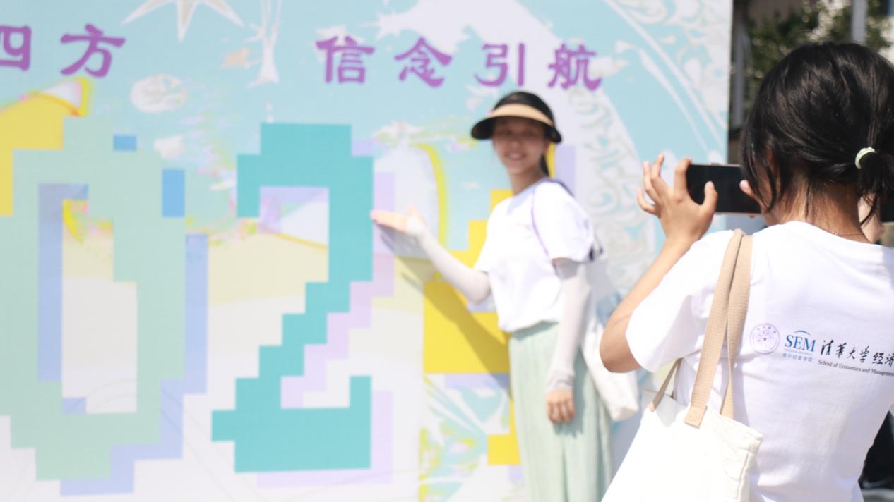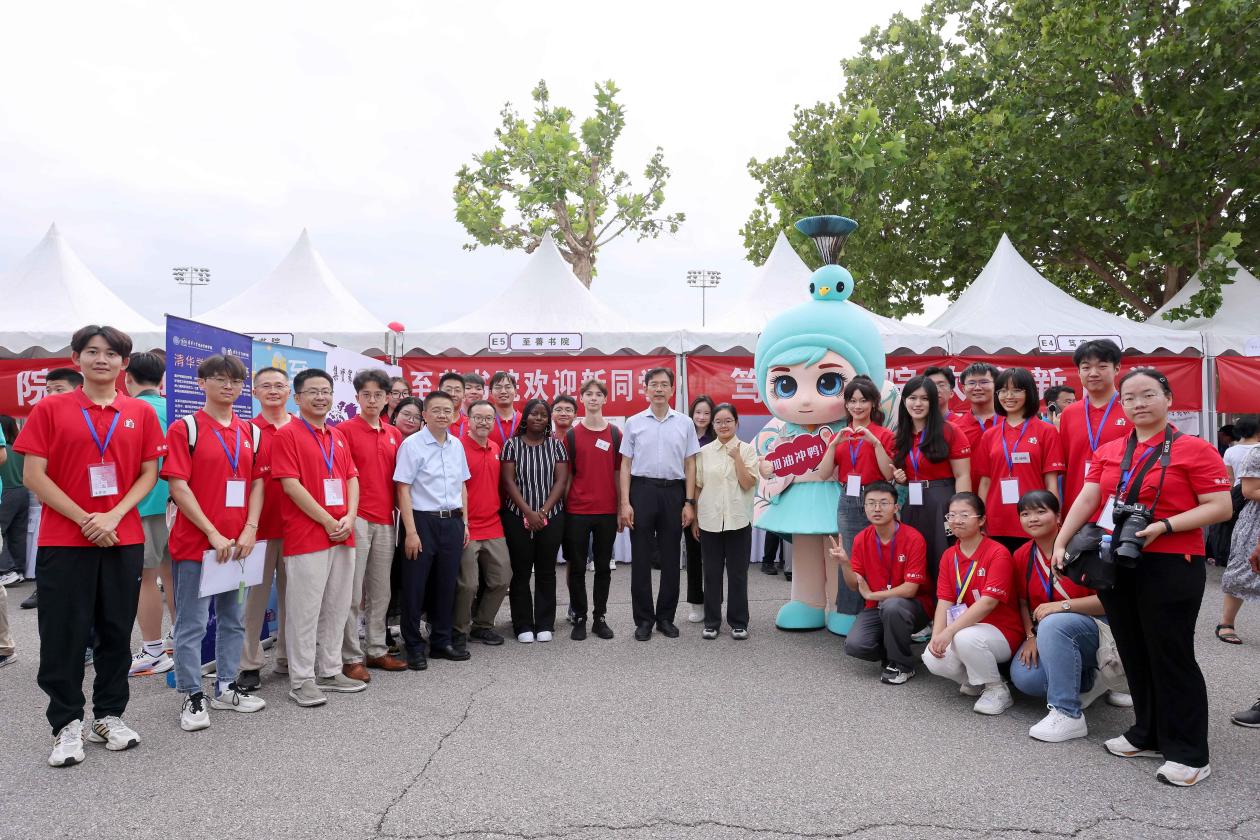 在热烈氛围的感染中,新生们纷纷兴致勃勃地和学长学姐交流、与院系吉祥物互动。妙语连珠的打卡展板、围绕新生赠书《邓稼先传》等主题开展的迎新活动、学生艺术团精彩的“快闪”表演……“四字班”的清华故事就此开启。
