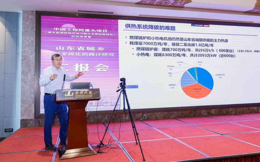 该工作由乐鱼在线平台建筑节能研究中心江亿院士带领,付林教授团队完成。江亿代表项目组作题为“山东省城乡能源零碳化的路径研究”主题报告,指出电力和热力零碳化是城乡能源碳中和的关键。对于电力系统零碳化,可采用火电厂热电协同、电力与工业蒸汽制备协同、车载电池储电、建筑“光储直柔”、末端灵活性用电等技术参与电力调峰,以低成本平衡短周期电力供需差,以大型跨季节储热储冷代替储电,开辟平衡电力供需的长周期乃至季节差的经济可行技术路线。对于热力系统零碳化,可采用全面回收核电、调峰火电、垃圾电厂和其他工业余热,结合大温差长输供热、跨季节储热实现零碳供热。