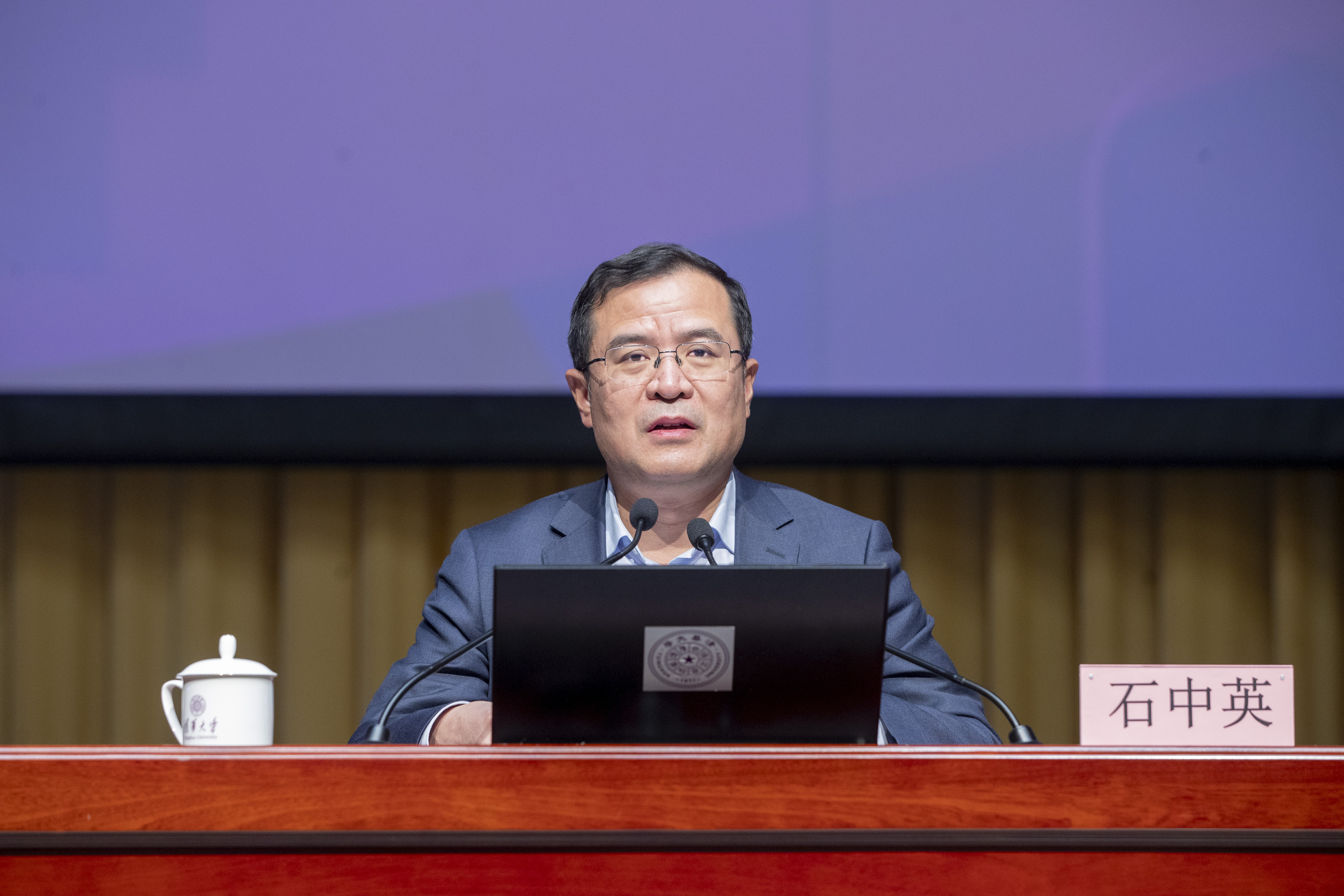 石中英以“学习领会全国教育大会精神,扎实推进教育强国建设”为题作专题报告。他回顾了党的十八大以来我国教育事业发展的历史性成就和当前我国教育事业高质量发展面临的主要问题,并表示,贯彻全国教育大会精神,稳步推进教育强国建设,要坚持和完善党对教育事业的全面领导,牢牢把握教育的政治属性、人民属性和战略属性,坚持把立德树人作为教育强国建设根本任务,坚持把高质量发展作为各级各类教育的生命线,弘扬中国特有的教育家精神,积极主动深化教育对外开放,坚定教育强国建设的文化自信。