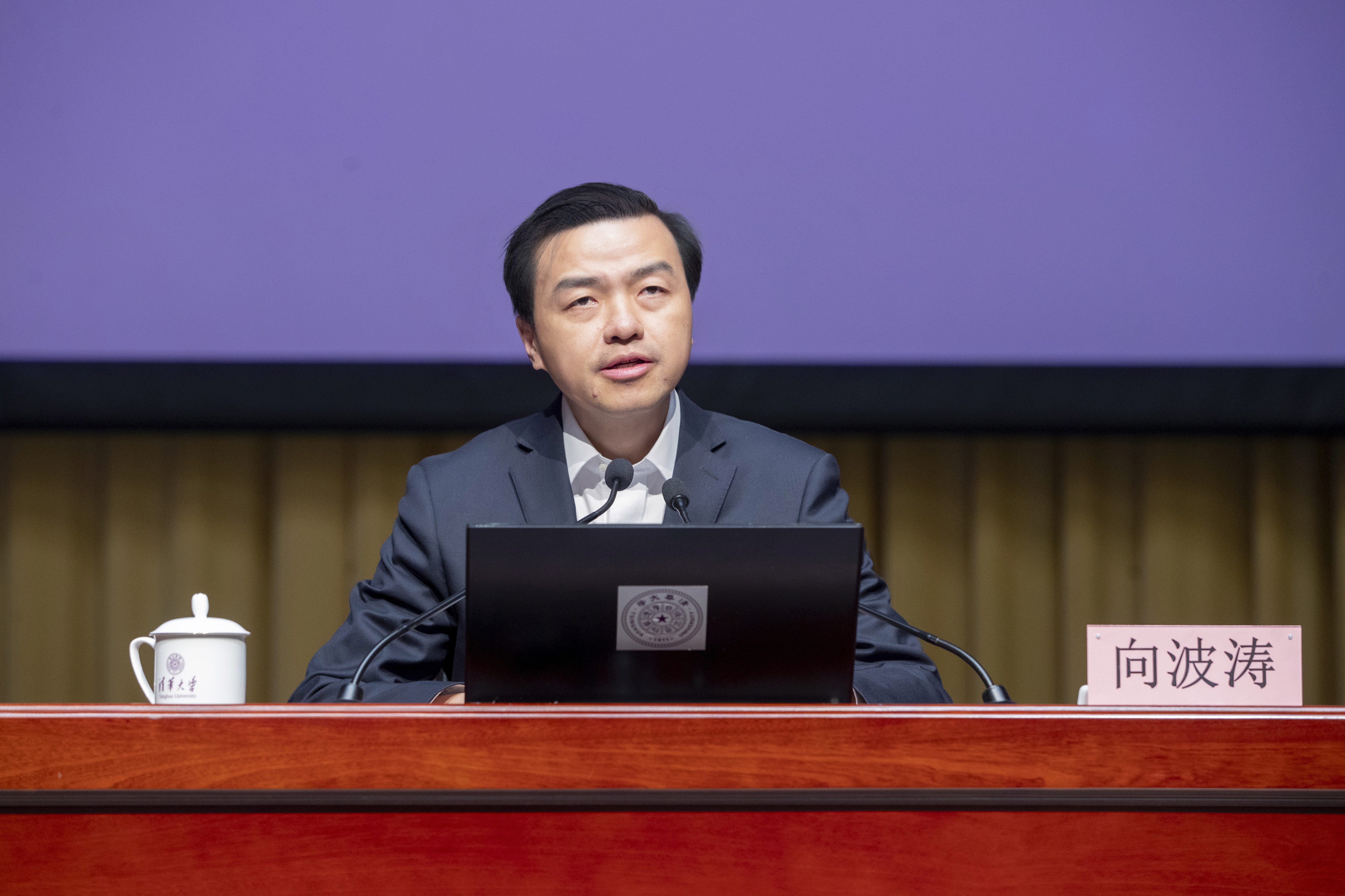 校领导邱勇、向波涛、过勇、郑力、赵罡、曾嵘、许庆红,部分老领导,来自全校各单位的1.4万余名在职教职工党员、离退休教职工党员在新清华学堂主会场、216个分会场和荷塘雨课堂参加培训。向波涛、教育研究院院长石中英作专题报告,许庆红主持。