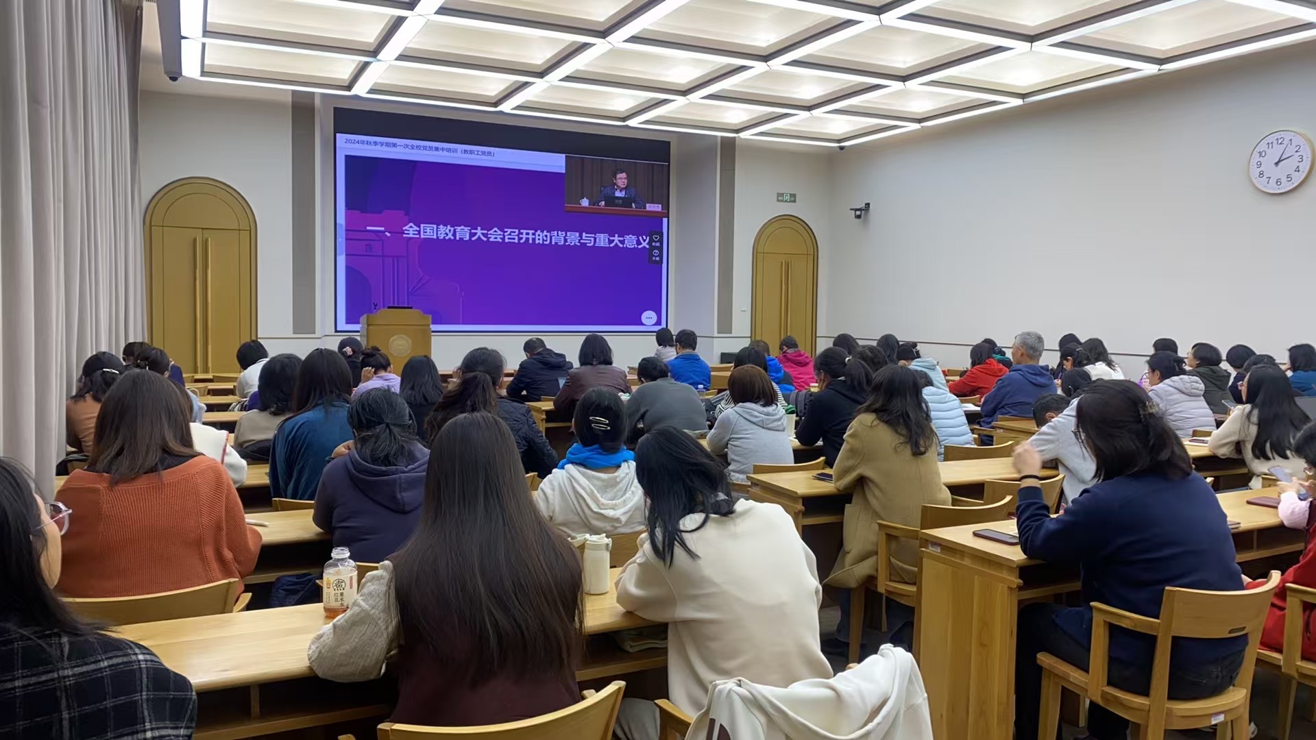 2024年秋季学期第一次全校党员集中培训针对教职工党员、学生党员分别开展培训。10月17日,学校党委已举办面向学生党员的集中培训,本次是面向教职工党员的集中培训。本次培训分为集中学习环节与集中讨论环节,全校各党支部要在一个月之内,以党支部或党小组为单位开展专题组织生活,结合工作实际讨论“对全国教育大会精神的认识体会,教书育人方面仍存在的问题”“如何弘扬教育家精神、树牢红线意识、严守师德师风,切实肩负起教书育人的光荣使命担当”等培训内容。