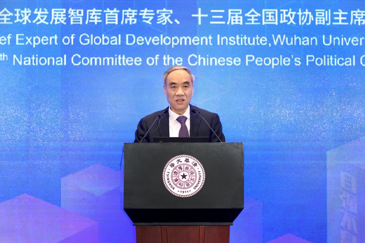 辜胜阻以“智能时代的全球治理与合作应对气候危机”为题作主旨演讲。他指出,2023年,习近平主席在第三届“一带一路”国际合作高峰论坛开幕式发表主旨演讲,提出“全球人工智能治理倡议”,为数字文明时代的人工智能全球合作和治理提供了建设性思路。他着重阐述了全球气候治理与人工智能协同合作的重要性与紧迫性,强调人工智能治理在全球合作中具有战略意义,要坚持发展与治理、创新与安全并重。他呼吁发达国家承担更多气候责任,完善气候治理,各国要发挥市场机制和政府引导双重作用,深化校企创新合作和产教协同育人,统筹推进教育科技人才体制机制一体改革,为应对气候变化与实现碳中和目标提供基础性和战略性支持。