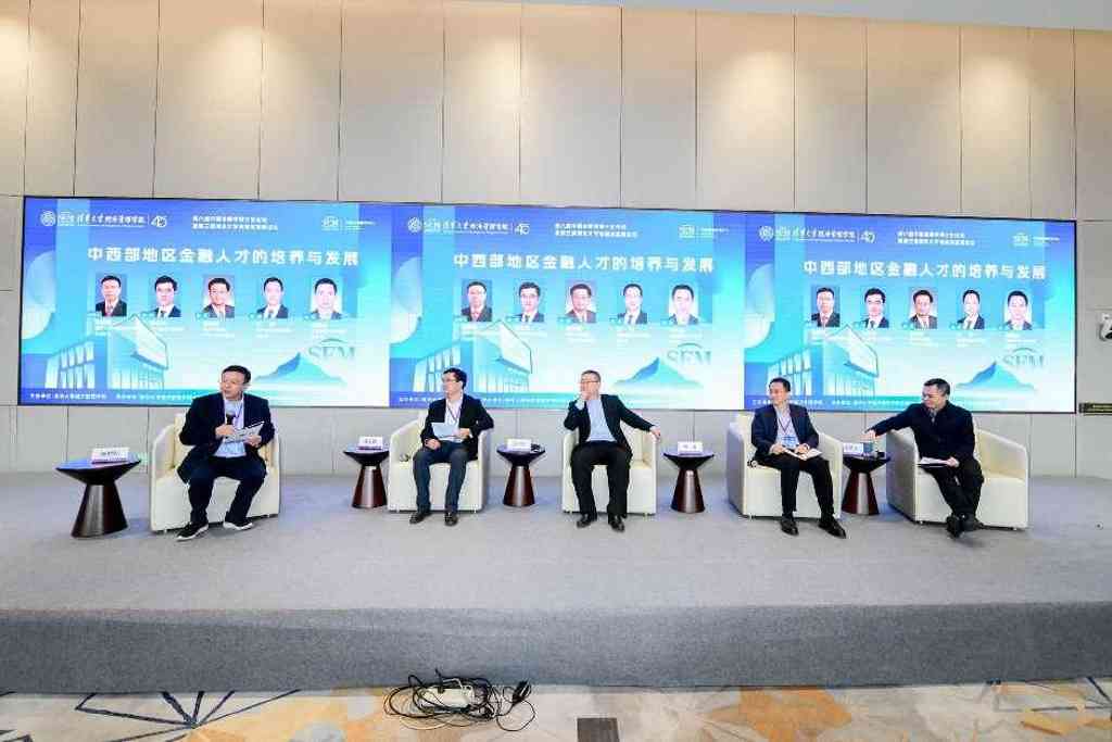 湖南大学原副校长杨胜刚主持第二场圆桌讨论。山东财经大学副校长彭红枫、广西大学原副校长田利辉、西南财经大学副校长王擎、新疆财经大学副校长周铭山围绕中西部高校在金融人才培养过程中如何促进中西部地区的经济发展,探索有中西部特色的金融人才培养模式等话题展开讨论。