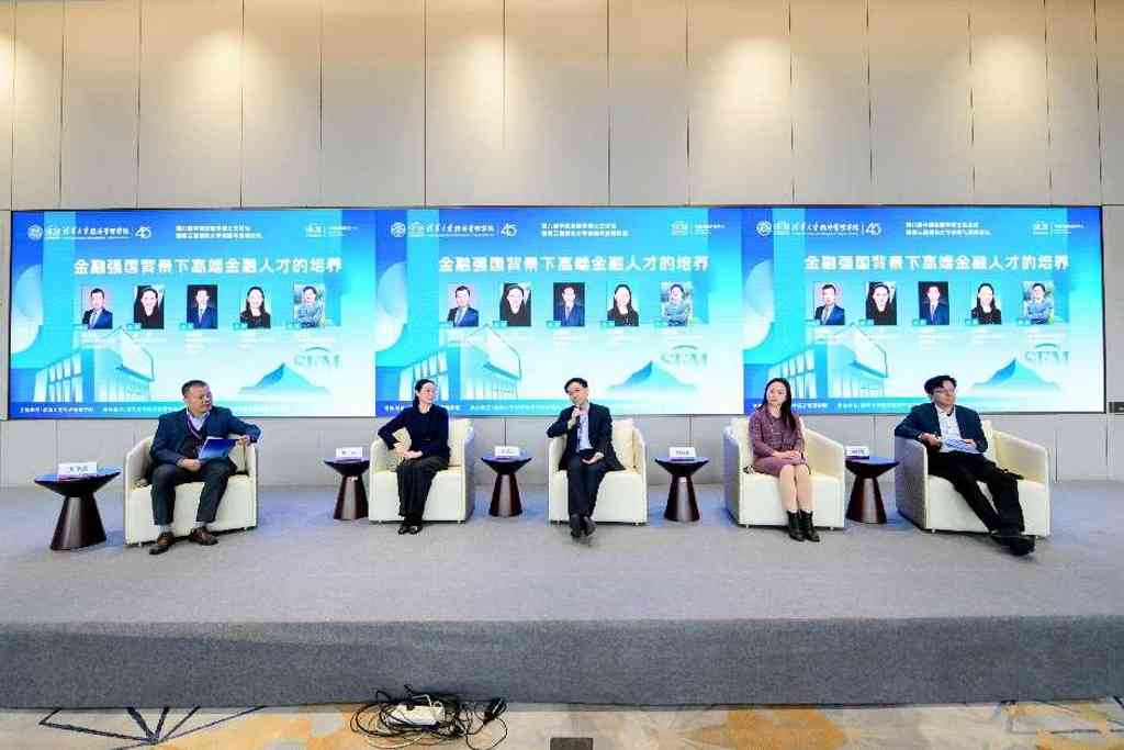 第一场圆桌讨论由中央财经大学金融学院院长张学勇主持。对外经济贸易大学副校长黄薇、中央财经大学副校长李建军、上海财经大学副校长刘莉亚、广东金融学院副院长易行健就人工智能与金融强国的时代背景下高端金融人才应该具备哪些能力、各高校在人才培养过程中如何具体实现学科交叉融合等话题展开讨论。