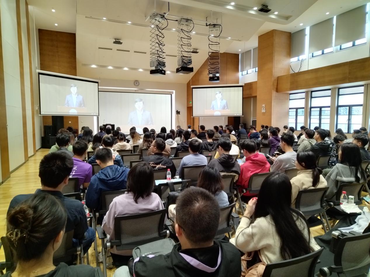 封硕、杜思睿、彭盛飞(从左至右)分别作交流发言