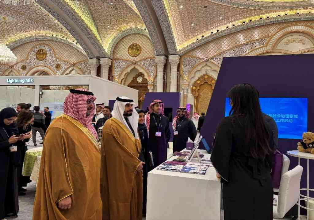 会议主办方代表、沙特数字政府办公室主任参观展位