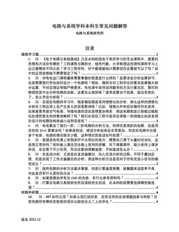 《电路与系统本科学习常见问答汇编手册》目录