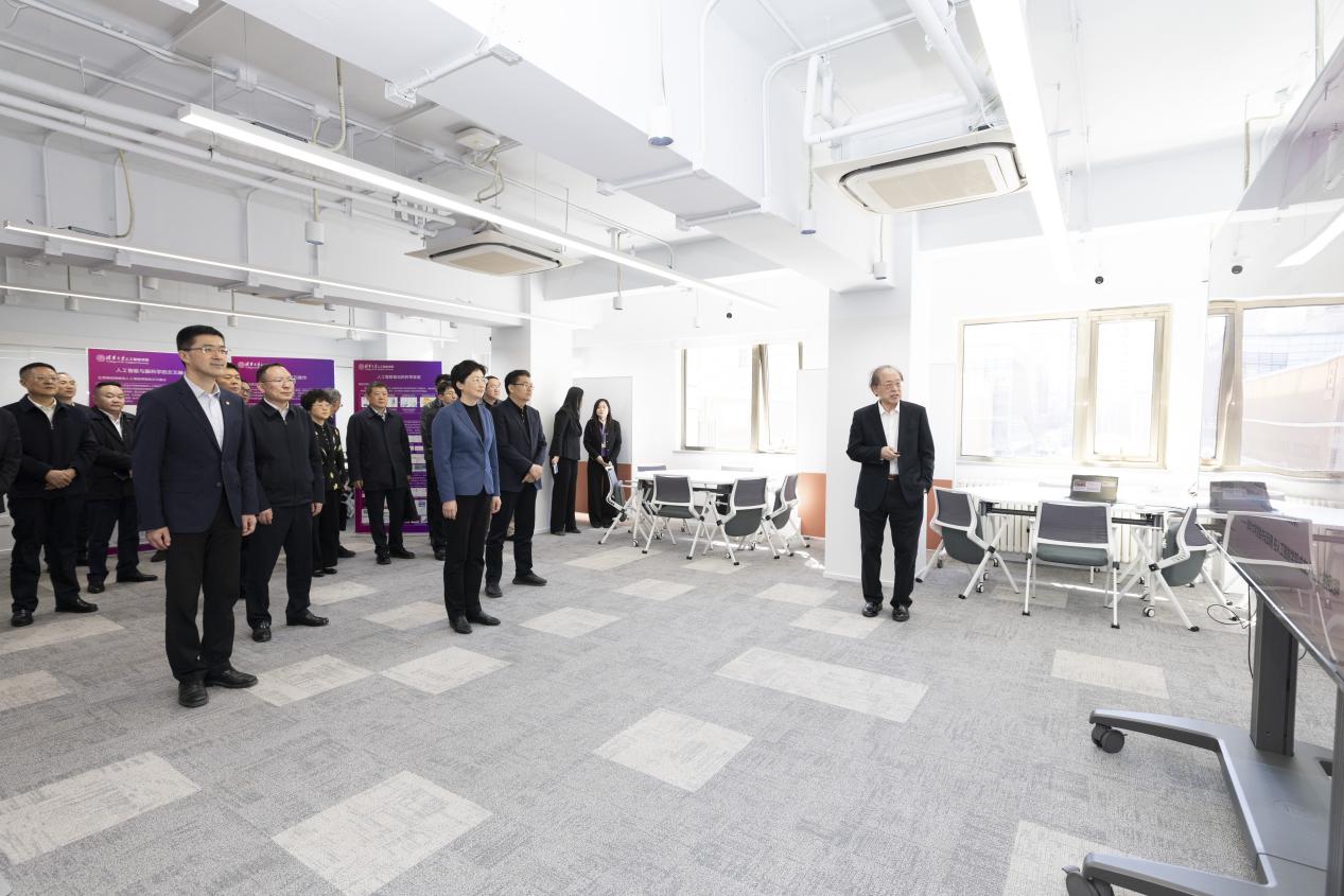 会前,施小琳一行来到乐鱼在线平台人工智能学院参观调研,了解学校人工智能领域进展并与人工智能学院院长、图灵奖获得者、中国科学院院士姚期智进行交流。计算机系党委书记、人工智能学院教授贾珈介绍了学校人工智能领域的重要进展和校地合作情况。过勇等一同参观调研。