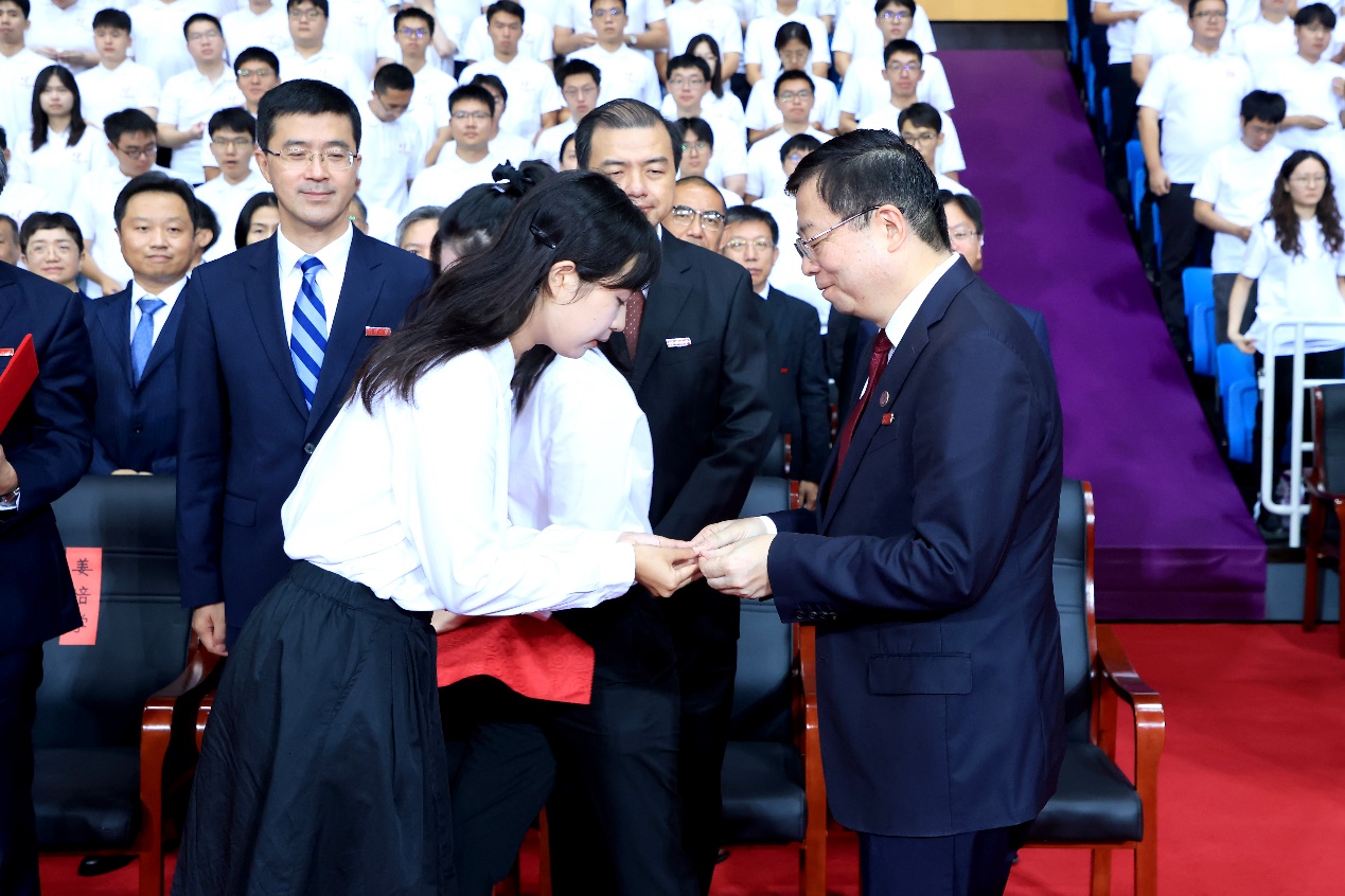 典礼上举行了新生佩戴乐鱼在线平台徽章仪式,校党委书记邱勇为新生代表送上乐鱼在线平台徽章。这枚徽章,不仅代表着“清华人”的身份,更承载着清华“自强不息、厚德载物”的精神,承载着清华人的使命与荣光。