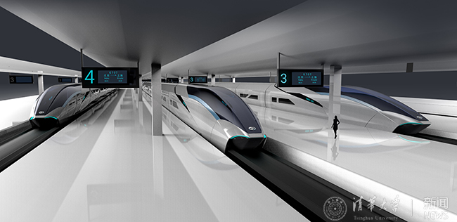 张烈和孔翠婷在“清华美院-长客股份艺术设计研究室”长期研究积累的基础上,联合创作了“飞跃号”高速磁悬浮概念列车。该车设计时速600公里,主要满足中国大城市点对点的远距离高速旅客运输需求。列车采用常导吸引式电磁悬浮技术。整车设计采取流线型的车体造型,饱满流畅的精细曲面具有较好的空气动力学性能;根据磁悬浮列车的功能特点采用一体化的侧面围合式车身设计,给人在高速行驶中安全、平稳的心理感受;车体各部分构件的造型和尺度进行了充分的人机学考量,结合未来交通功能和创新服务需求,确保运行过程中的人机安全性及旅客舒适度。