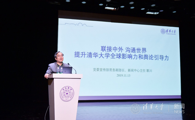 在开班致辞中,覃川首先介绍了新形势下国家对宣传工作特别是对外宣传工作的总体要求和学校“大宣传”工作格局,并分享了清华2019年全球传播的表现及对未来工作的思考。他表示,学校高度重视宣传工作,专门成立了宣传工作领导小组和全球传播工作领导小组,统筹推进相关工作,进一步提升全球影响力和舆论引导力。当前,学校综合改革和职工队伍改革进入关键阶段,启动“全球传播能力提升计划”恰逢其时。希望通过该计划的实施,促进学校内涵式发展,推动各单位设立宣传和海外宣传专人专岗,全面加强全球传播能力建设,提升清华国际声誉,塑造良好国际形象,更好地发挥“联接中外,沟通世界”的作用。