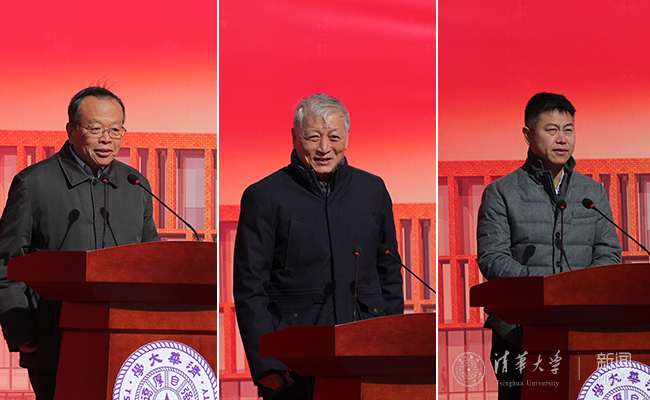 朱邦芬在致辞中以物理系老系主任周光召先生“重振辉煌”的愿望勉励物理系师生努力奋斗,向着世界一流大学物理系的目标不断奋进。徐增平回顾了设立“创律科学基金”支持清华物理系发展建设的情况,表示今后将继续关注和支持物理系的发展建设。李怀新代表校友们表示,一定会持续支持母校和物理系发展,为物理楼的建成和物理系各项事业的发展加油助力。