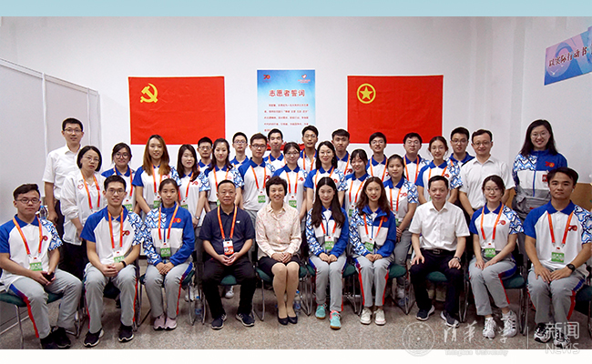 在与志愿者交流过程中,陈旭表达了对同学们的问候。她表示,在全国人民欢庆新中国成立70周年之时,同学们牺牲休息时间投身志愿服务,是以实际行动为祖国献礼,为国家发展尽一份微薄力量,体现了同学们的一种爱心、一种境界、一种对社会的责任感。在大家的共同努力下,清华的志愿服务已经成为一个品牌,紫荆志愿者的微笑更是一抹亮色。陈旭希望同学们在志愿服务工作中充分展现青年学生的热情和风采,相信大家在做好服务保障的同时,通过与参观者的交流、对展览内容的深入了解,能够进一步体会新中国发展的成就,进一步增强爱国信念,坚定为国家作贡献的使命和责任。