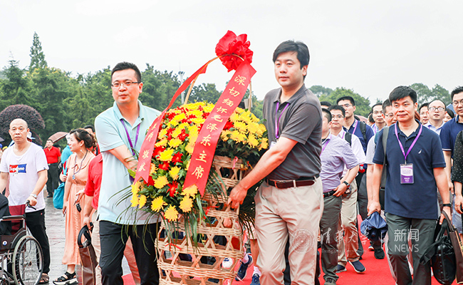 12日,考察团冒雨赶赴韶山和宁乡,听着对革命先烈们“为有牺牲多壮志”的鲜活诠释,怀着对峥嵘岁月和革命情怀的历史追忆,与络绎不绝的人群一起,前往毛泽东同志、刘少奇同志故居和纪念馆,寻访革命伟人的心路历程和奋斗足迹。