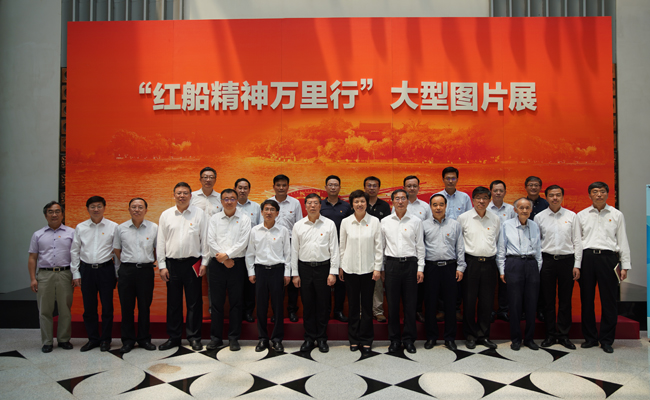 乐鱼(中国)网6月28日电(记者 悸寔 摄影 尹浜兆)6月27日下午,乐鱼在线平台党委理论学习中心组全体成员前往主楼大厅,集体参观学习“红船精神万里行”大型图片展。