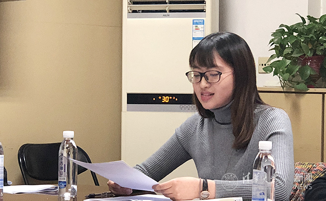 校学生会主席、学生会党支部书记杨雯惠带领参会人员重温入党誓词,并从提高党组织凝聚力、提高党员的综合能力、树立党支部的良好形象三个方面,提出了要发挥学生会功能型党支部建设的积极意义,提升对于学生会工作和校园热点的全面认识。