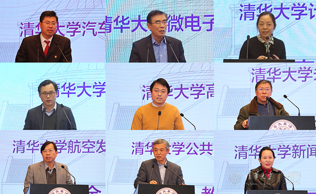 汽车系主任杨殿阁,微纳电子系主任、微电子所所长魏少军,全球创新学院院长、计算机系教授史元春,物理系主任王亚愚,高等研究院教授翟荟,未来实验室主任、美术学院教授徐迎庆,航空发动机研究院党工组组长帅石金,苏世民学院院长、公管学院教授薛澜,新闻与传播学院常务副院长陈昌凤分别结合国际一流科研合作助力学科建设、处理器动态安全监控技术、人机交互自然性的计算原理、量子反常霍尔效应的实验发现、冷原子物理研究、大幅面触觉图形显示器产品原型研发、未来航空发动机研发布局、社会安全与国家安全、成立亚太传播学会联盟等方面工作交流了科研创新的做法和成果。