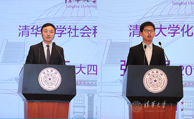 2018年本科生特奖获得者、社科学院2015级本科生刘充,2018年研究生特奖与学术新秀获得者、化工系2016级硕士研究生张学强作为学生代表交流了他们在学术研究上的成果和感悟。