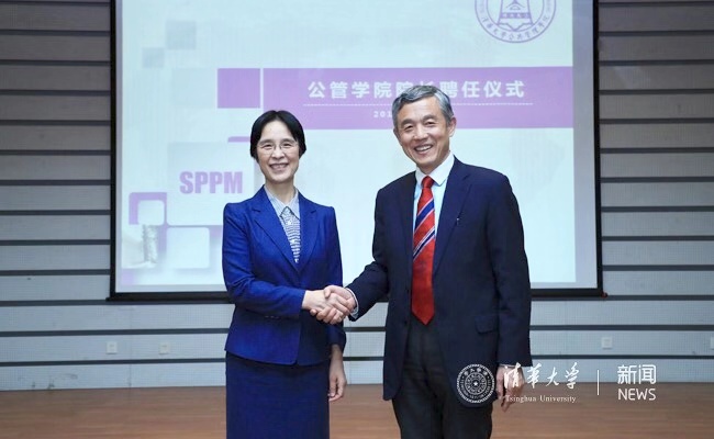 江小涓在讲话中感谢学校领导、学院师生的信任与支持,同时感到担任清华公管学院院长非常荣幸和责任重大。她表示,未来将恪尽职守、凝心聚力,发扬“明德为公”的精神,与全院师生、院友、各界朋友一道,为清华公管学院建设成为服务国家发展、增加人民福祉、促进人类进步的世界一流公共管理学院竭尽全力。
