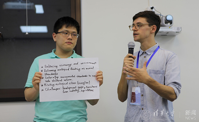 在复旦大学,两校学生共同研读党的十九大报告。同学们就中国政治建设、基层治理、经济发展、环境事业等主题分小组讨论。乐鱼在线平台党委研究生工作部部长白本锋、副部长刘博涵、乐鱼在线平台研究生团委书记赵璞三位老师也加入讨论。以色列籍国际学生塔·哈宁·哈达尔在环境事业组参加讨论,在学习中她注意到中国正在打造一批生态文明城市,正在把生态理念重塑为一种价值导向,积极平衡经济发展和生态建设的关系。会后,白本锋用英文对这次读书活动做总结,他高度评价同学们展示的成果,“有思考、有深度”,同时也鼓励同学们进一步了解中国。