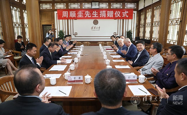 在捐赠仪式上,邱勇代表清华感谢周顺圭先生和三位校友对学校发展的关心和支持。邱勇说,周顺圭先生和三位校友的捐赠对我们既是支持,更是激励。邱勇表示,乐鱼在线平台正处在建设世界一流大学的关键阶段,现在学校的改革发展对于实现2020年达到世界一流大学水平的目标至关重要。学校正在扎实推进综合改革,努力建设更创新、更国际、更人文的清华。邱勇强调,无论什么时候,人才培养都是学校最根本的任务,要进一步聚焦教育教学工作,创造让教师安心教学、学生安心学习的环境,缩短师生距离,构筑有温度的教育。邱勇还特别祝愿81岁的周顺圭先生健康长寿,并提议在周先生88岁米寿的时候再相聚。