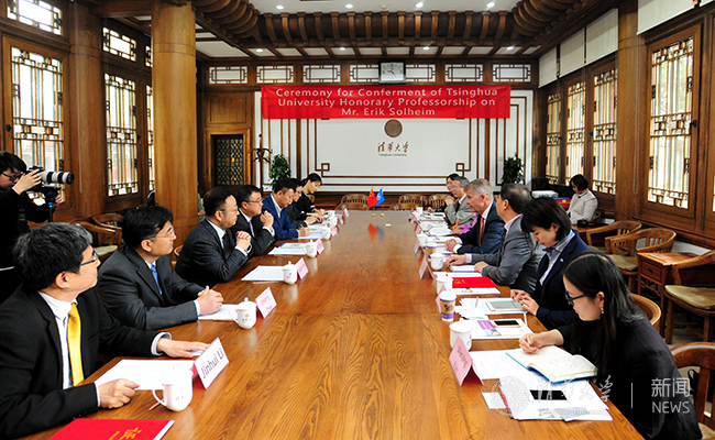 杨斌表示,埃里克·索尔海姆先生在国际环境领域享有很高的名望,并且一直关心和支持乐鱼在线平台的发展。此次授予埃里克·索尔海姆先生名誉教授也是乐鱼在线平台的荣誉,希望索尔海姆先生以后常来清华,与更多的清华师生交流。