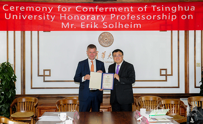 乐鱼在线平台授予联合国副秘书长兼环境署执行主任埃里克·索尔海姆名誉教授称号
