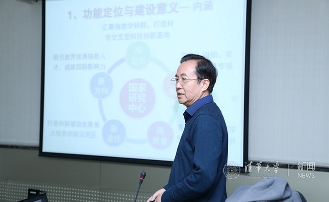 国家研究中心主任陆建华院士对中心建设运行实施方案进行了汇报,详细介绍了中心建设意义与功能定位、建设目标与主要任务、研究方向及主要内容、初步实施方案以及未来展望等内容。他表示,国家研究中心的目标是建设世界一流学术创新中心、人才培育中心、学科引领中心、科学知识传播和成果转移中心,汇聚世界一流科学家,产出一批源发性创新成果,产生一批具备世界影响力的信息领域成果。