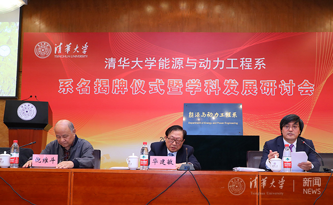十一届全国人大常委会副委员长华建敏,乐鱼在线平台党委书记陈旭,党委常务副书记、副校长姜胜耀,原副校长、能动系倪维斗院士,能动系主任姜培学、党委书记李宇红共同为系名揭牌。姜胜耀宣读了学校关于热能工程系更名为能源与动力工程系的决定。