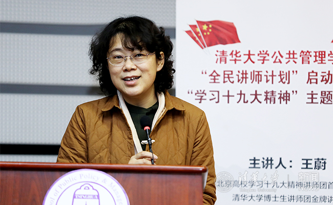 “全民讲师计划”启动后,举办了“核心律章”学习十九大精神系列报告“红旗下的一二·九”主题教育宣讲会,邀请公管学院2015级博士生王蔚做了题为“强国在路上,青年当接棒”的报告。报告从面向现代化、面向世界、面相未来三个方面,分享了学习党的十九大精神的心得体会及对当代青年所负使命责任的理解。