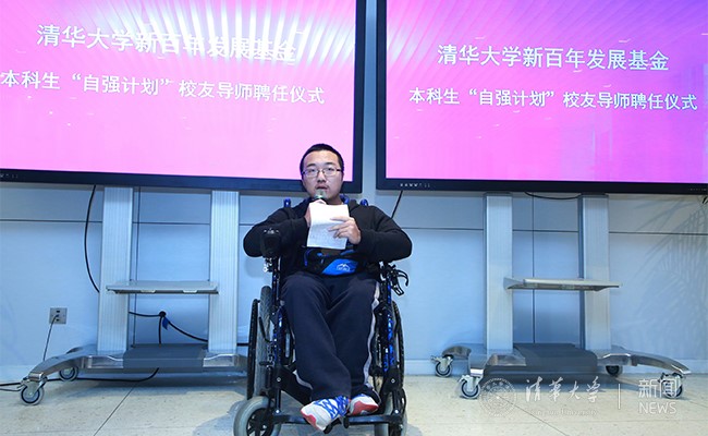 在聘任仪式现场,“自强计划”老生代表、计算机系硕士二年级学生矣晓沅分享了与校友导师之间五年的点滴故事。他说,“自强计划”不仅仅是资助与受助,校友导师是生活上的帮助者,是广阔世界的开拓者,是筑梦人,也是家人。矣晓沅说:“清华是我们的家,校友导师就是我们的家人。”在校友导师影响下,他与同学们在去年成立了乐鱼在线平台学生无障碍协会,推动清华和国家的无障碍设施建设,用自己的知识能力为梦想而奋斗。“自给自立、强己强国”是矣晓沅对“自强”二字的理解。