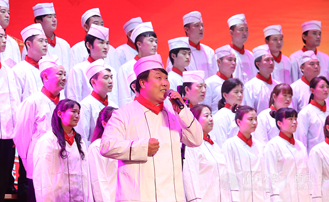 文艺汇演在老教师合唱团的大合唱《祖国颂》中拉开帷幕,深情的歌声与浑厚的朗诵融合得恰到好处,唱响“江山壮丽,人民豪迈”。大合唱贯穿首场演出始终:《四渡赤水出奇兵》《祖国不会忘记》《到吴起镇》《没有共产党就没有新中国》《歌唱祖国》《中国人民解放军进行曲》……一首首耳熟能详的经典合唱,将听众带回激情燃烧的岁月,重温胜利的喜悦与感动;《爱我中华》《东方之珠》《中国之梦》《不忘初心》……一句句充满感召力的时代之音,引起了现场观众的强烈共鸣,展示了践行美好梦想的坚定之志;《马兰花开》《飞向远方》《清华颂》……有关清华的音乐响起,现场观众满怀豪情。
